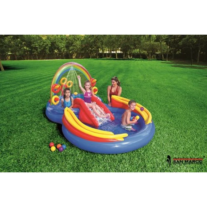 La piscina gonfiabile Rainbow include diversi giochi, come le palline colorate e gli anelli. E’ il gioco gonfiabile perfetto per far divertire i bambini all’aria aperta e in tutta sicurezza, il prezzo è veramente vantaggioso e potete acquistarla online su Gruppo San Marco con spedizioni gratis.