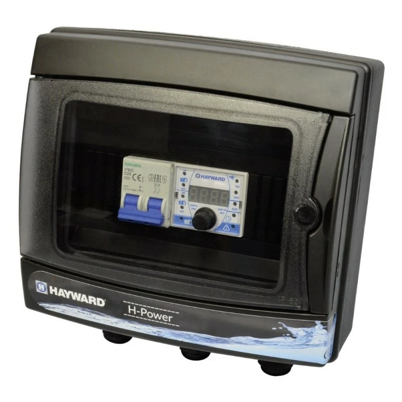 H-Power appartiene alla serie di quadri elettrici Hayward e consente di dare corrente agli impianti filtranti delle vostre piscine da esterno, interrate e fuori terra. Ogni quadro elettrico dispone di due anni di garanzia e non necessita di attrezzatura specifica per la sua installazione. Disponibili con 2 timer per filtrazione e 1 timer per l’illuminazione. Si possono modificare i colori del proiettore (funzione RGB).