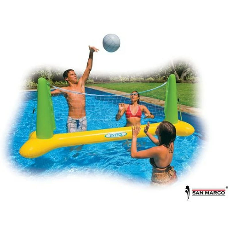 Rete da volley ball gonfiabile Intex, compresa di palla, kit di riparazione e base gommata per fissare la rete. Ideale per passare momenti di assoluto divertimento con la famiglia o con gli amici. Comoda e pratica, si gonfia e si sgonfia in pochissimi minuti.