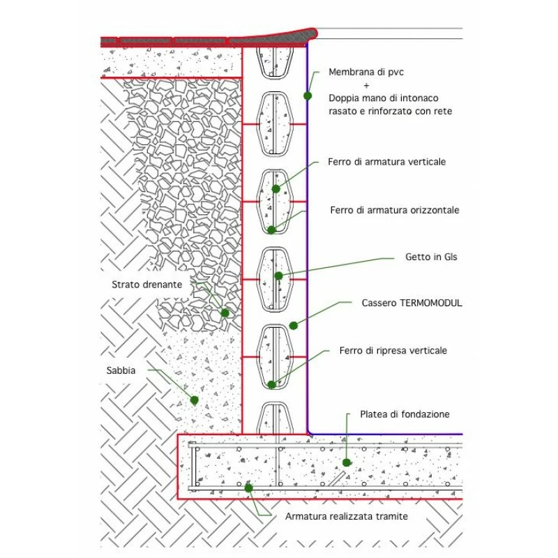 - Casseri di TERMOMODUL per la creazione del perimetro della piscina