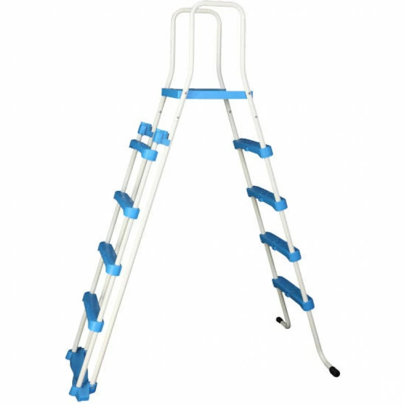 Scaletta per piscina fuori terra sia frame che autoportanti, in linea con la normativa europea, offre la possibilità di rimuovere gli scalini esterni in modo da non consentire ai più piccoli di arrampicarsi ed entrare in piscina senza che un adulto possa visionarne l’entrata. Questo modello di scaletta San Marco ha un utilizzo compatibile con le piscine San Marco, Bestway, Jilong, Intex, GRE ed altri marchi di piscine fuori terra che non superano l’altezza di 132 cm. È dotata di un telaio galvanizzato antiruggine e gradini in plastica ad alta resistenza per una maggiore tenuta e sicurezza. A differenza di molte altre scalette presenti sul mercato, oltre ai 4 gradini è presente una piattaforma che garantisce maggiore sicurezza alle persone che la usano per entrare in piscina.