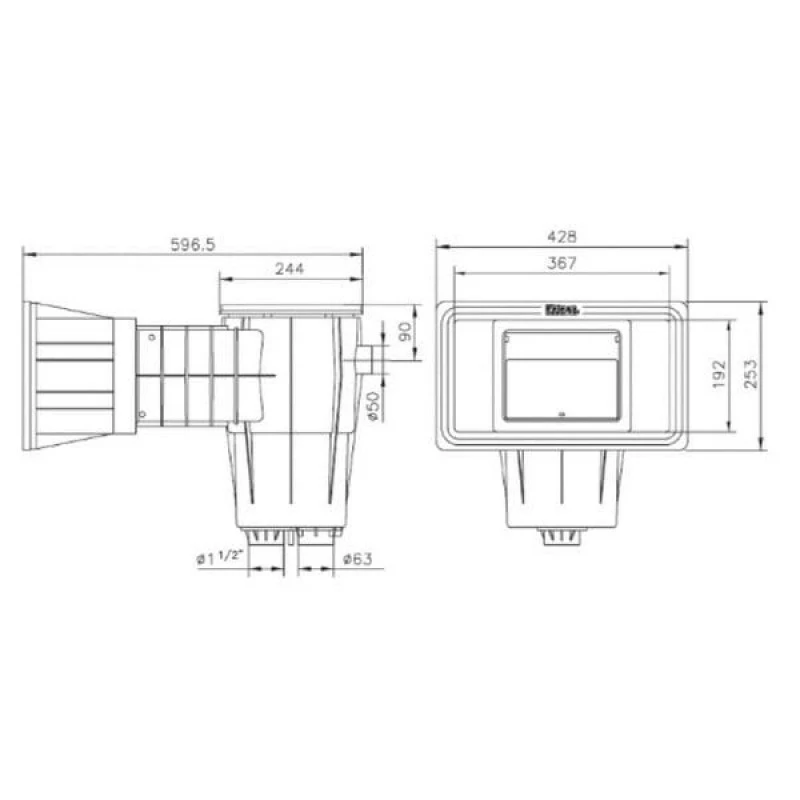 Skimmer a bocca larga per piscina interrata con pannello in acciaio