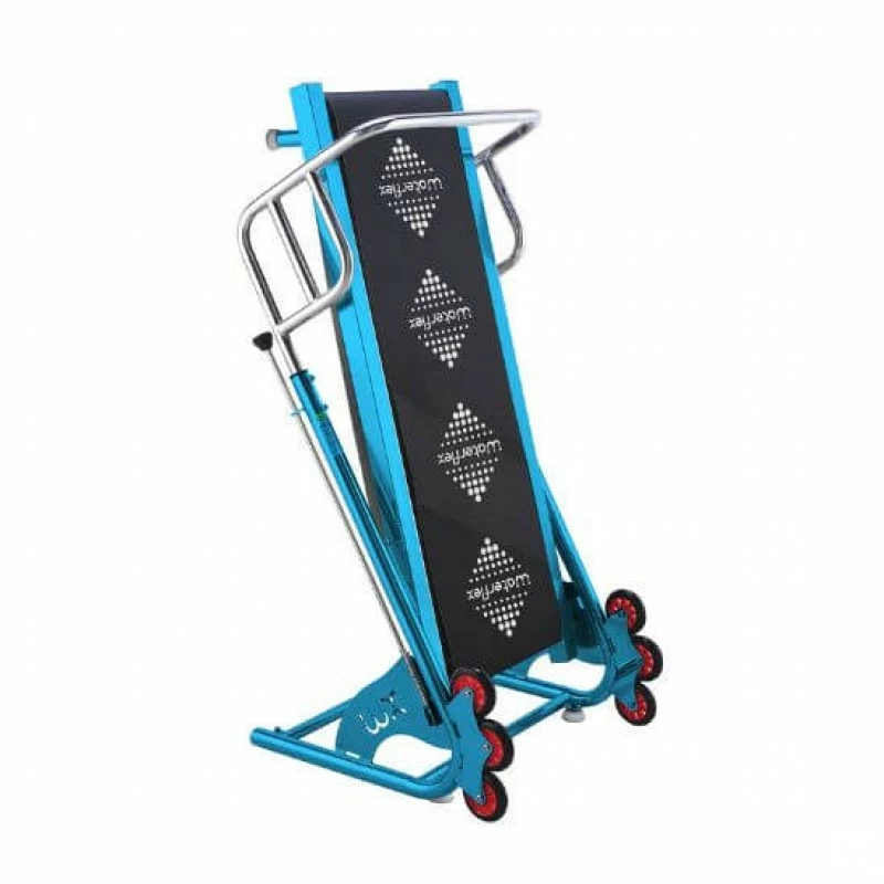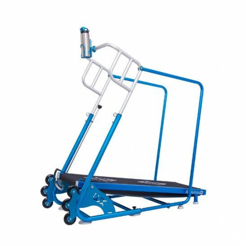 Per facilitare l’installazione il tapis roulant per piscina è completo di sistema di stoccaggio rapido. Al tocco di una leva, l’attrezzo può aprirsi e piegarsi.